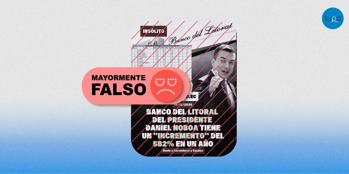 Una imagen viral atribuye el Banco del Litoral al presidente Daniel Noboa y destaca un aumento del 582 % en utilidades. El porcentaje es correcto, pero se calcula sobre una base baja y no refleja por sí solo un desempeño financiero extraordinario.