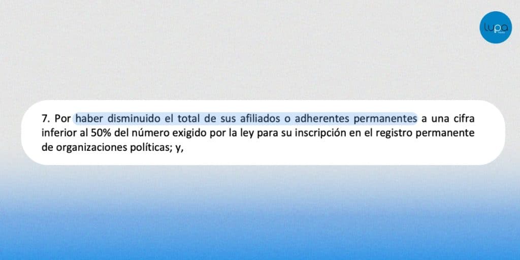 La resolución se sustenta en el artículo 327, numeral 7, del Código de la Democracia, que permite cancelar una organización si su número de afiliados permanentes cae por debajo del 50% del mínimo requerido.