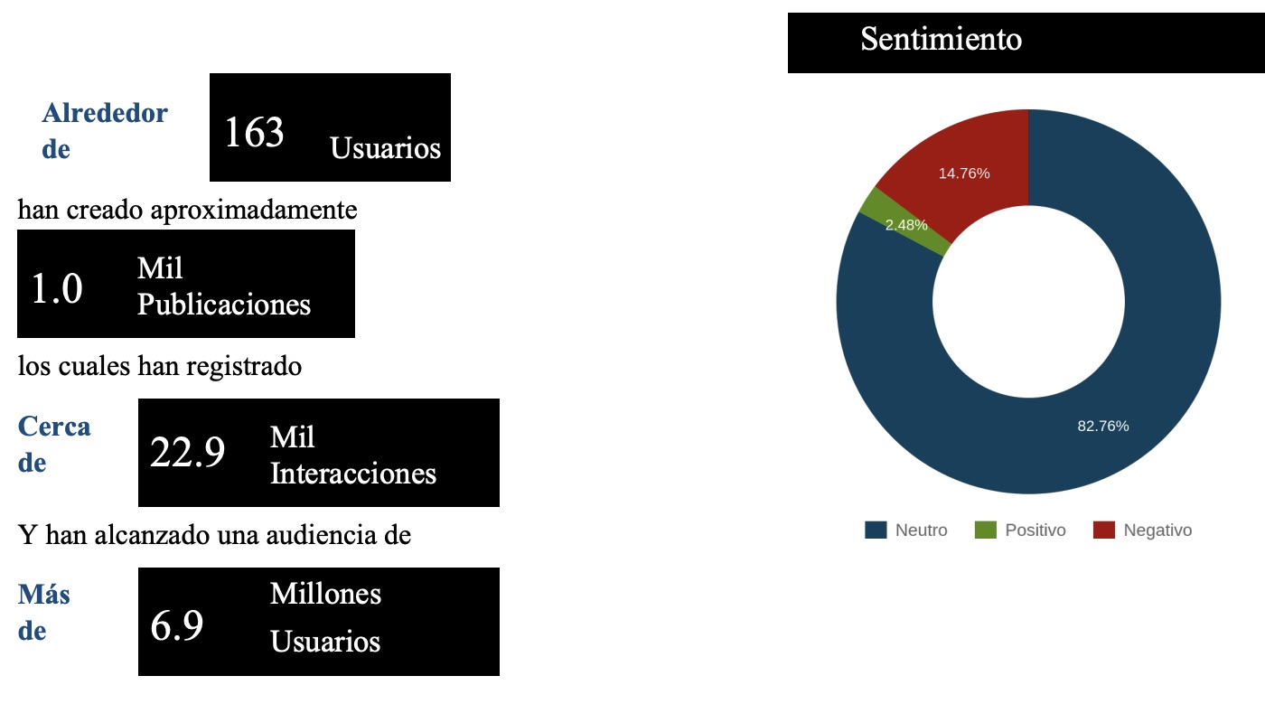 Un análisis de escucha social muestra que, entre el 12 y el 16 de enero de 2026, el tema acumuló más de 1.000 publicaciones y una audiencia potencial estimada de 6,9 millones de personas. Esto refleja un alto nivel de exposición pública en un corto periodo de tiempo.