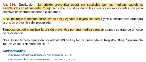 En enero de 2025, la Corte Constitucional emitió la sentencia 49-21-CN/25, que analizó una demanda contra el artículo 536 del Código Orgánico Integral Penal (COIP). Este artículo establecía que cuando una persona procesada era reincidente, no podía sustituirse la prisión preventiva por otras medidas cautelares.