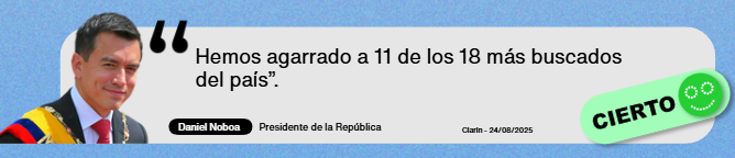 Para junio de 2025, la lista de los criminales más buscados en Ecuador incluía a 24 objetivos de alto valor vinculados a organizaciones delictivas como Los Choneros, Los Lobos, Los Águilas y Los Tiguerones. Para entonces, el Ministerio del Interior señaló que de la lista de 18 más buscados, 11 ya han sido capturados.