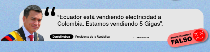 Durante el mes de febrero de 2025, Ecuador había enviado a Colombia 4.32 GWH de energía, según registran los operadores de ambos países. Sin embargo, el Ministerio de Energía de Colombia aclaró que la energía que Ecuador ha enviado a su país entre el 12 y 17 de febrero de 2025 corresponde a una activación automática de las Transacciones Internacionales de Energía (TIE) o para mantener condiciones operativas de la interconexión, no por solicitud o necesidad expresa.