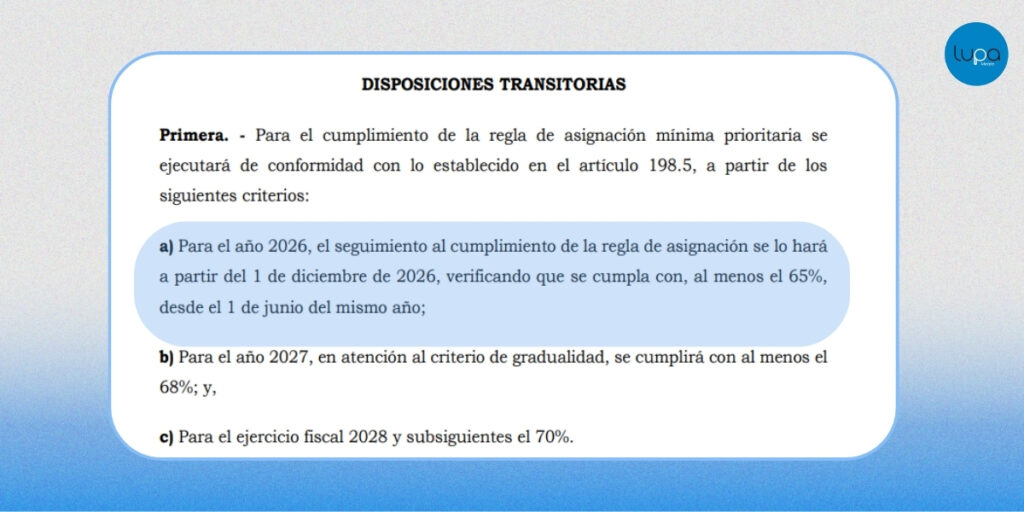 Además, la ley establece que, en un plazo máximo de 90 días desde su publicación (23 de febrero de 2026), el ente rector de finanzas públicas debe emitir lineamientos técnicos para estandarizar el cumplimiento de esta regla. Esto implica que: