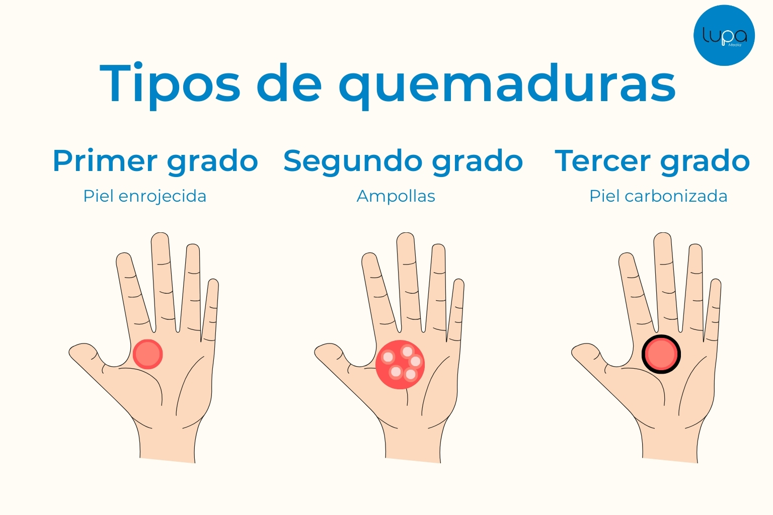 Existen tres tipos principales de quemaduras: