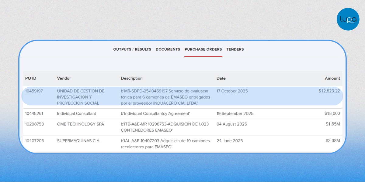 En octubre de 2025, la Contraloría General del Estado inició un examen especial sobre la gestión de EMASEO en esta contratación.