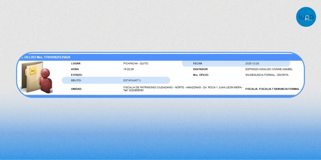 El 29 de diciembre de 2025 se presentó una denuncia ante la Fiscalía General del Estado por presunto delito de estafa. El proceso se encuentra en investigación previa.