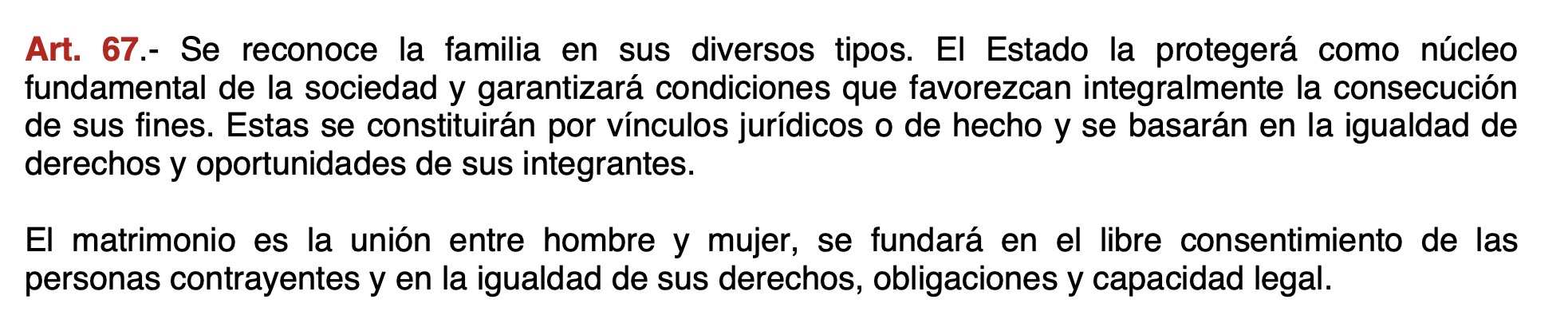 - Leer el artículo 67 de forma literal y aislada (solo hombre y mujer) es discriminatorio, restringe derechos y es inconstitucional.
