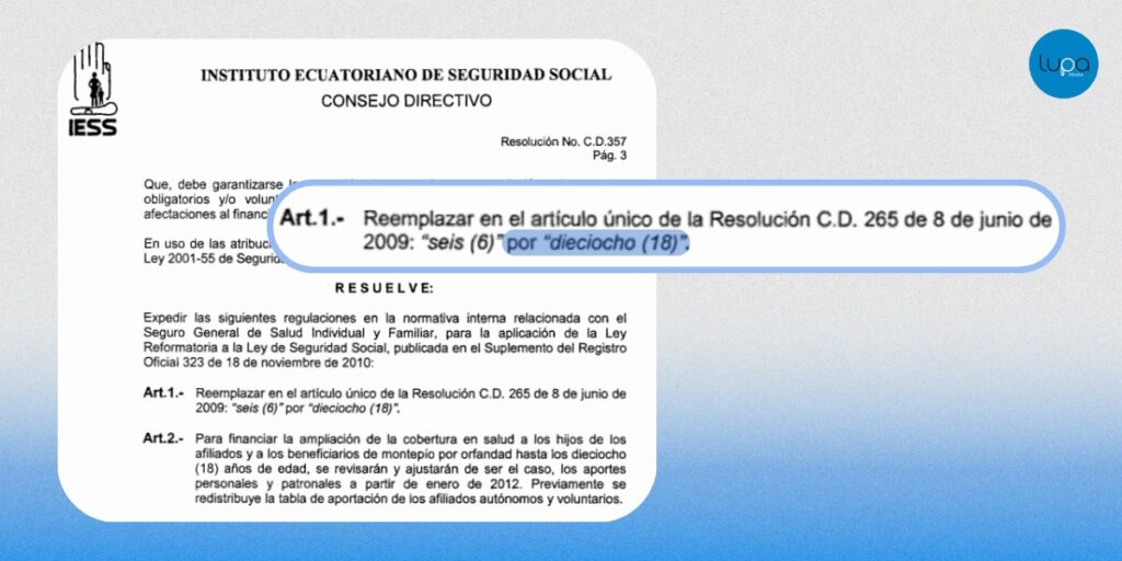 No, esto es falso. El Consejo Directivo del IESS aprobó que los hijos de los afiliados sean beneficiarios del seguro de salud mediante la Resolución C.D. 265 (8 de junio de 2009), inicialmente hasta los 6 años. Luego, la Resolución C.D. 357 (20 de octubre de 2010) amplió la cobertura hasta los 18 años, publicada en el Registro Oficial N.º 333 (2011), vigente hasta hoy. Hasta septiembre de 2025, el IESS cuenta con 3.878.926 afiliados activos.