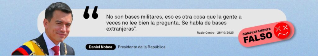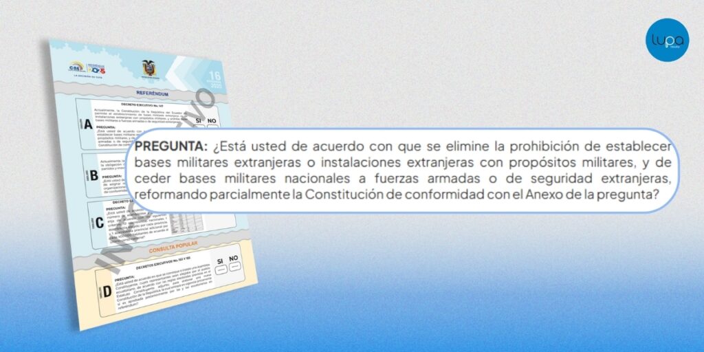 La expresión «bases militares extranjeras» aparece literalmente en todos los documentos oficiales vinculados al referéndum y consulta popular 2025. El Decreto 147, el dictamen de la Corte Constitucional, la plataforma Voto Informado del CNE y la papeleta electoral reproducen la misma redacción, que menciona de forma explícita las bases militares extranjeras sin ninguna modificación.