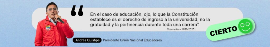 El artículo 356 de la Constitución garantiza que la educación superior pública sea gratuita hasta el tercer nivel, y dispone que el ingreso se regule mediante sistemas de nivelación y admisión. Sin embargo, es cierto que la gratuidad no es ilimitada: está condicionada al cumplimiento de la responsabilidad académica. En la práctica, si un estudiante reprueba materias, pierde su gratuidad y debe asumir los costos, que varían según la universidad, la carrera y la carga horaria.