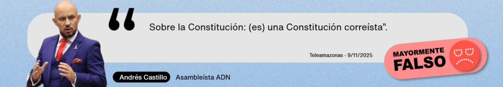 De acuerdo con Mauricio Alarcón Salvador, director de la Fundación Ciudadanía y Desarrollo, en Ecuador suele asociarse cada Constitución al gobierno que la promueve, pero en este caso el calificativo de “correísta” responde más a la polarización política que a su contenido.La abogada constitucionalista Elsa Guerra coincide en que la Carta de 2008 fue el resultado de un proceso amplio y participativo, con la intervención de diversos sectores sociales y políticos, por lo que trasciende la figura de Rafael Correa y refleja un pacto ciudadano plural frente a la crisis institucional de la época.