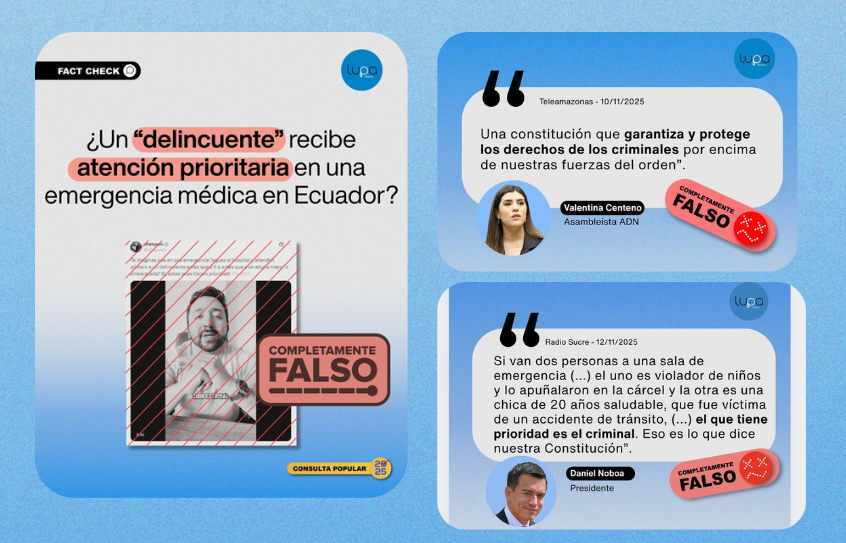 Ecuador acudió por segunda vez en menos de un año a las urnas y, tanto en redes sociales como en el discurso político, la desinformación volvió a moverse con rapidez, apelando más al miedo, la indignación y la incertidumbre que a la evidencia. Entre el 1 y el 13 de noviembre, Lupa Media realizó 115 verificaciones —entre contenido viral, discurso público y respuestas ciudadanas enviadas a #VerificaciónALaCarta por WhatsApp— y los hallazgos confirman que, una vez más, la disputa no solo estuvo en las urnas, sino también en la narrativa: quién lograba instalar su versión, generar impacto y mover a la gente desde la emoción.