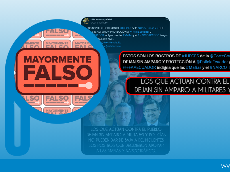 Una publicación viral que afirma que los jueces de la Corte Constitucional «dejan sin amparo y protección» a personal de la Policía Nacional y de las Fuerzas Armadas ecuatorianas tras suspender artículos de leyes de seguridad.