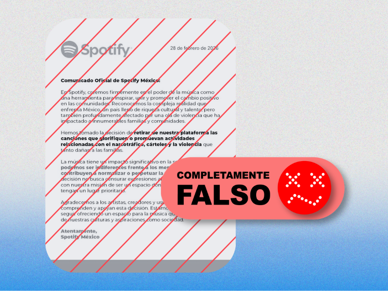 El comunicado es falso. La plataforma confirmó que no ha emitido ningún anuncio de este tipo y que no existe veto a géneros como los corridos tumbados.