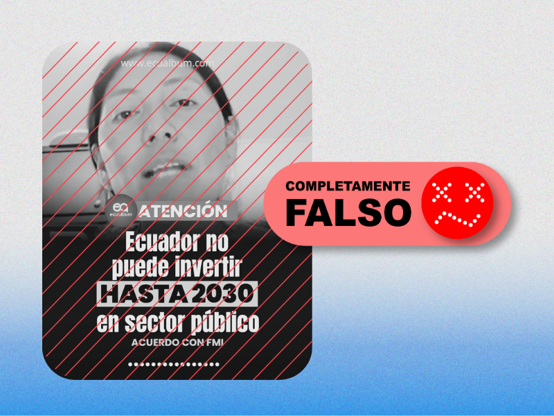Un video viral que afirma que «Ecuador no puede invertir hasta 2030 en el sector público, según acuerdo con el FMI». El contenido hace referencia a declaraciones de la excandidata vicepresidencial Pacha Terán emitidas el 4 de diciembre de 2025
