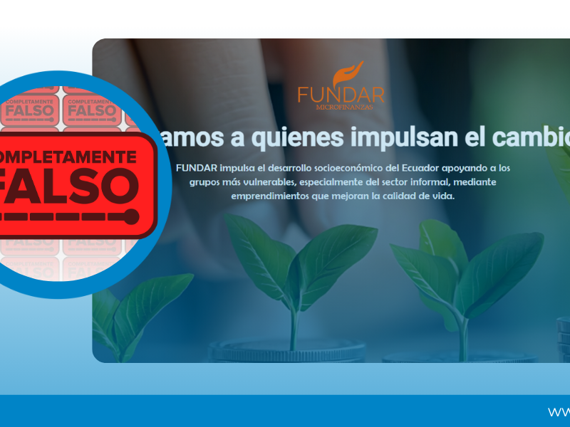 Una supuesta fundación “Fundar” ofrece impulsar la inclusión económica de personas vulnerables con microcréditos y capacitación financiera fue catalogada por la Superintendencia de Bancos como "entidad no autorizada" para operar en el sistema financiero ecuatoriano.