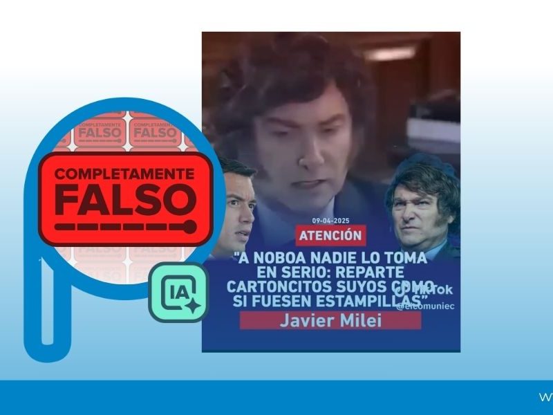 COMPLETAMENTE FALSO: Javier Milei no realizó declaraciones despectivas sobre Daniel Noboa. El video viral es una manipulación creada con inteligencia artificial. La entrevista original con Andrés Oppenheimer, publicada el 1 de abril de 2024, no contiene ninguna mención a Noboa ni a Ecuador. Análisis técnicos confirman la manipulación digital del contenido.