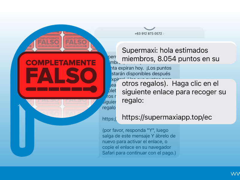Supermaxi aclaró que se trata de una publicación engañosa y sugiere no compartir datos personales. Las promociones o concursos se realizan solo en canales oficiales y puntos de venta, no por mensajes de texto.