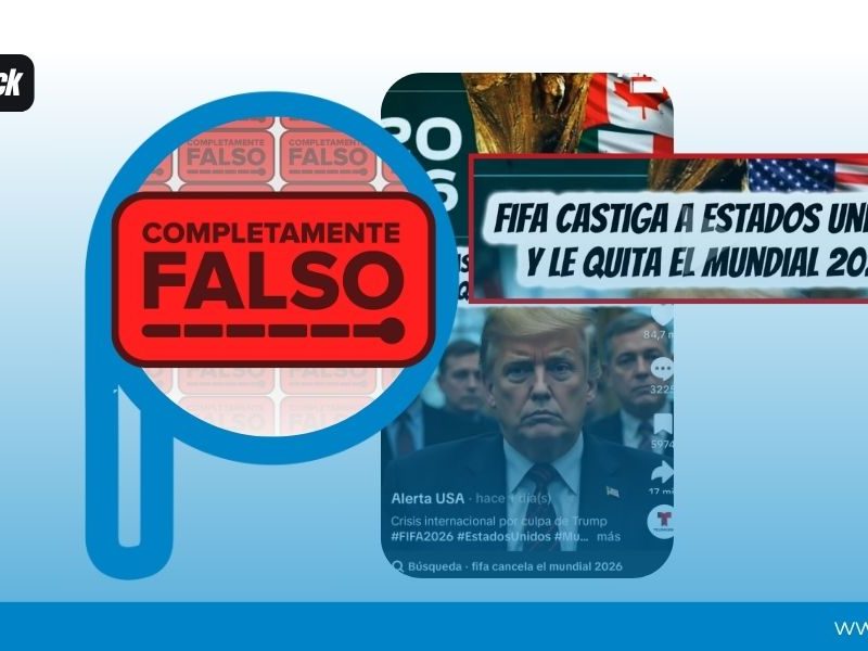 Un video viral en TikTok de la cuenta @alertas.usa que afirma que FIFA retiró a Estados Unidos como sede del Mundial 2026 debido a las políticas migratorias del presidente Trump.