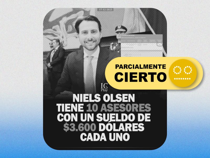 El presidente de la Asamblea Nacional, Niels Olsen, cuenta con 12 funcionarios en el equipo de la Presidencia del Legislativo. Sin embargo, no todos reciben el mismo salario ni todos son asesores presidenciales. Además, este tipo de estructura es común en el cargo y no está limitada por la ley.