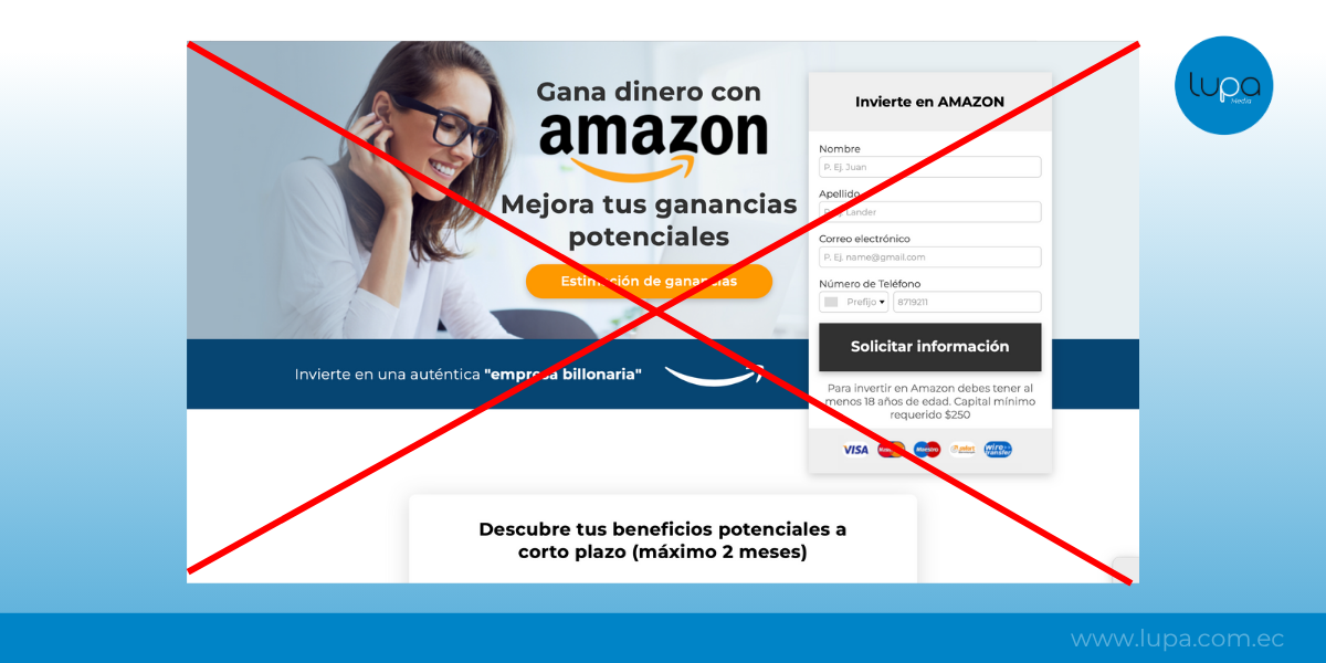 Ni Amazon ni el Banco Pichincha ofrecen programas de inversión que prometan grandes ganancias semanales. Los anuncios provienen de páginas fraudulentas que suplantan la identidad de ambas empresas para obtener datos personales y dinero de las víctimas.