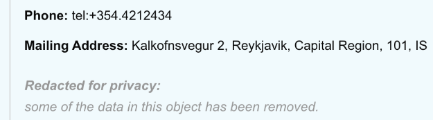 Al introducir todos estos dominios en la herramienta lookup.icann.org, nos aparece el mismo supuesto teléfono de contacto y una supuesta dirección de correo postal en Reikiavik (Islandia).
