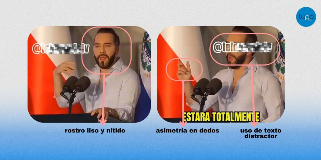 - Al comparar el video viral con el original, se identificaron las siguientes anomalías visuales propias de una manipulación con inteligencia artificial: