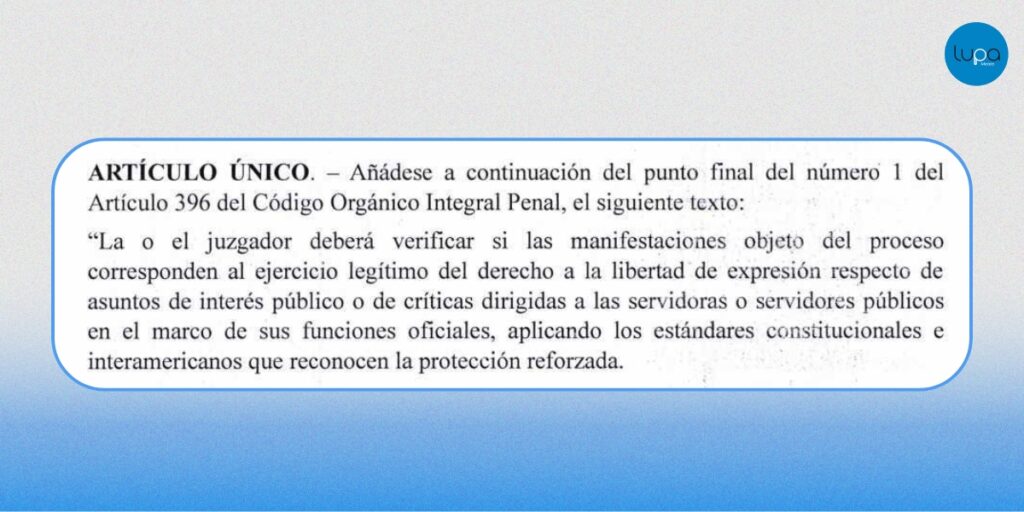 La propuesta plantea añadir un criterio para que los jueces evalúen si dichas expresiones forman parte del ejercicio legítimo de la libertad de expresión, especialmente cuando se trate de asuntos de interés público o críticas a funcionarios, bajo estándares constitucionales e interamericanos.