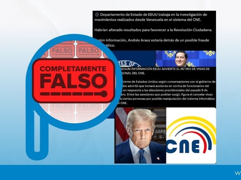 En redes sociales circula información falsa sobre una supuesta investigación del Departamento de Estado de los Estados Unidos al sistema informático del CNE por un presunto fraude electoral. También se difunden rumores sobre el retiro de visas al personal del CNE.