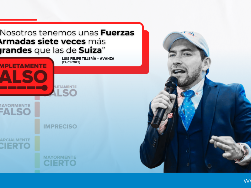 Según datos oficiales, Suiza tiene tres veces más efectivos reales que Ecuador. Por lo tanto, la afirmación del candidato presidencial de Avanza, Luis Felipe Tillería, es completamente falsa.