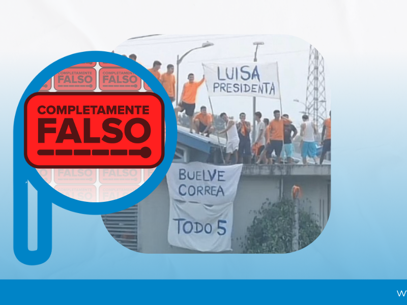 La fotografía de PPL con la pancarta fue manipulada; la original corresponde a las protestas en la Cárcel Regional de Guayaquil.