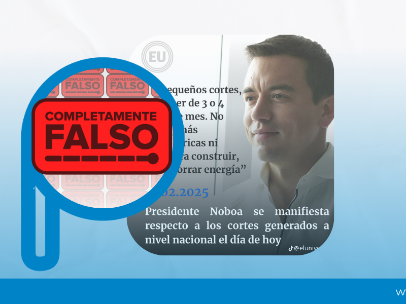Un contenido viral falsifica la identidad de diario El Universo para atribuir al presidente Noboa supuestas declaraciones sobre cortes de energía programados.