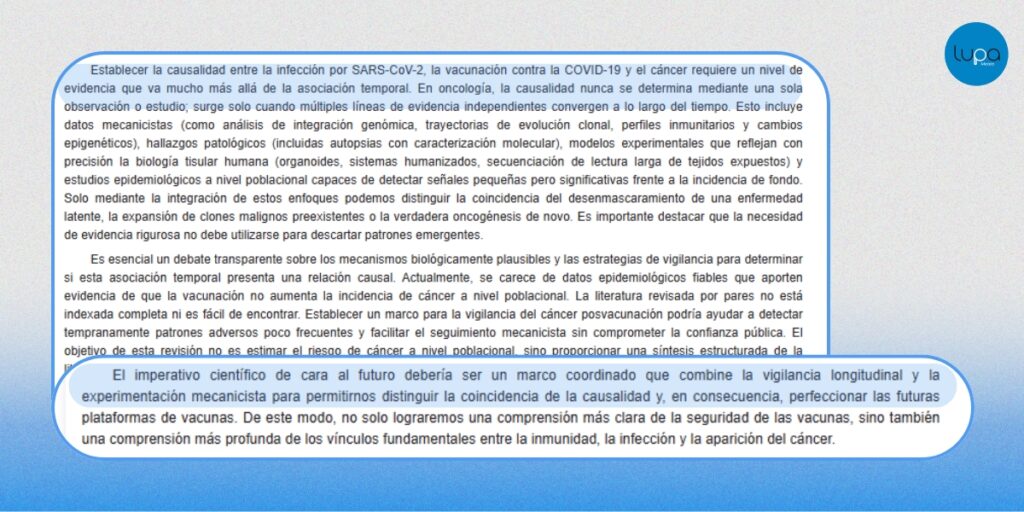 • No demuestra que las vacunas causen cáncer: Los autores señalan de forma explícita que la coincidencia temporal no permite establecer causalidad y que probar una relación entre vacunación, infección por SARS-CoV-2 y cáncer requiere evidencia mucho más sólida.