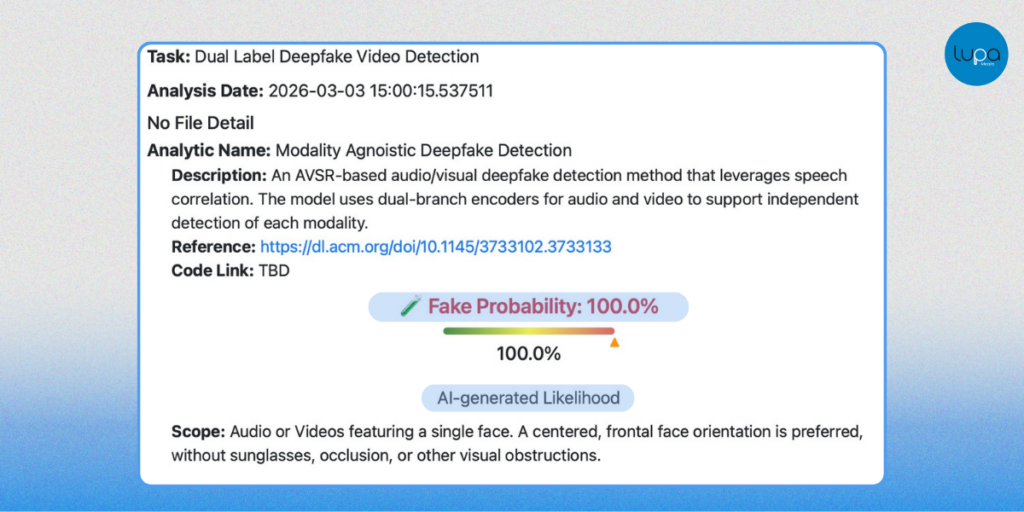 - Resemble AI lo identificó como contenido sintético según su modelo de análisis.