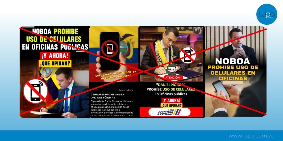 - Un video viral afirma falsamente que el presidente Daniel Noboa ordenó prohibir celulares en todas las dependencias estatales con sanciones administrativas.