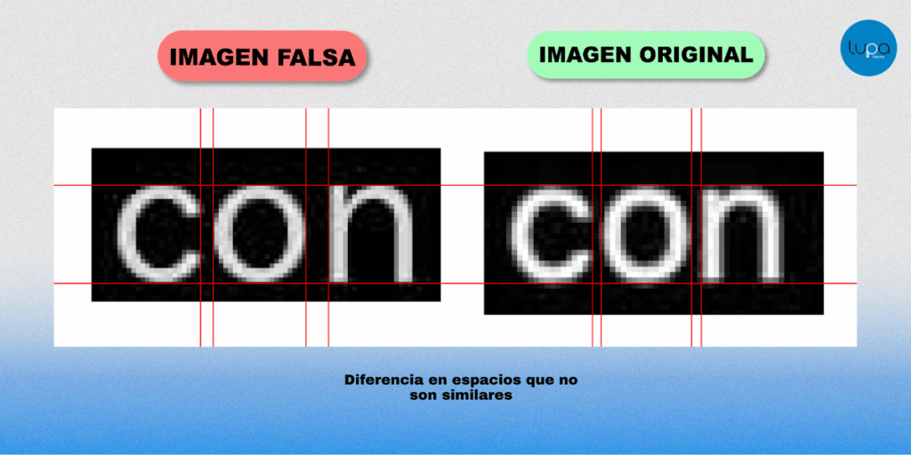 - Inconsistencias gráficas: Además de no encontrar registros de la supuesta publicación también hay un par de irregularidades visuales. El ancho de la tipografía es más reducido y las letras no tienen el mismo espacio entre ellas que un texto real. También las letras son un poco más gruesas y la imagen adjuntada tiene las esquinas rectas en 90 grados cuando las imágenes en X aparecen con esquinas redondeadas.