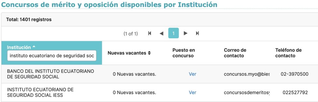 - Al buscar por la institución en el buscador de empleo, se refleja que no hay vacantes para algún cargo. El IESS confirmó a Lupa Media que actualmente no existen vacantes ni procesos de postulación abiertos en la institución.