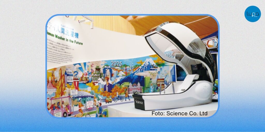 El dispositivo “Mirai Human Washing Machine” existe y fue exhibido oficialmente en la Expo 2025 Osaka. Utiliza tecnología de burbujas finas, sensores biométricos y sistemas de ducha automatizados para limpiar el cuerpo mientras monitorea la frecuencia cardíaca y el sistema nervioso autónomo del usuario. El proceso dura 15 minutos y el usuario permanece sentado durante la experiencia.