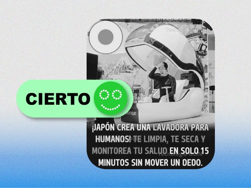 CIERTO: Japón desarrolló una “lavadora para humanos” llamada “Mirai Human Washing Machine” que combina limpieza con burbujas finas, secado y monitoreo de salud mediante sensores biométricos en un ciclo de 15 minutos. El dispositivo fue exhibido en la Expo 2025 Osaka de abril a octubre de 2025 y se comercializará en producción limitada para uso en hoteles y spas a partir de diciembre de 2025, con un precio aproximado de USD 400,000.
