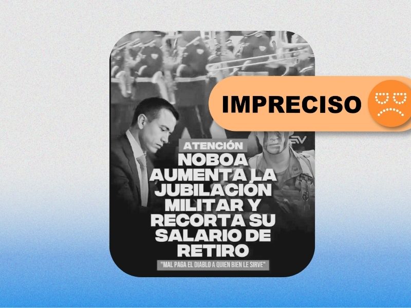 El presidente Daniel Noboa no ha dispuesto el aumento de la jubilación ni recorte del salario de retiro de los militares. La portada presenta como medida vigente lo que son propuestas en fase inicial de discusión, descontextualiza un reportaje real de Ecuavisa. El proyecto de ley del ISSFA se encuentra en la Comisión del Derecho al Trabajo y a la Seguridad Social de la Asamblea. Antes de su aprobación, requiere un proceso legislativo completo que incluye socialización, mesas técnicas y debate en la Asamblea Nacional. El proyecto puede ser modificado o no aprobarse.