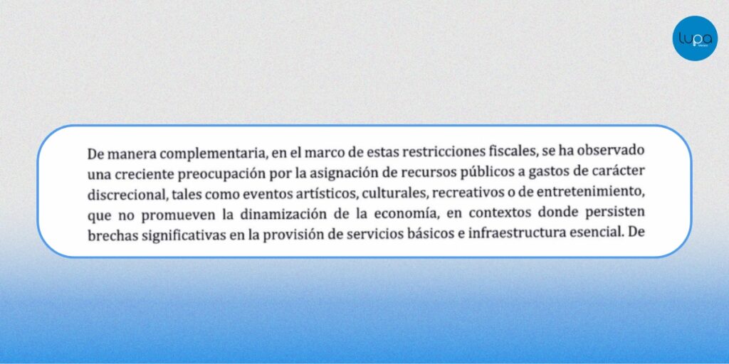 • La exposición de motivos menciona que gastos discrecionales, como eventos artísticos o recreativos, solo deben considerarse cuando los servicios básicos estén cubiertos; esta mención no tiene efecto normativo ni constituye prohibición.