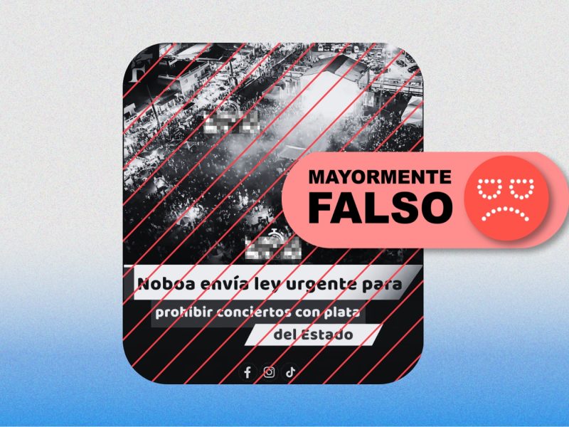 Una imagen viral que circula en redes sociales afirma que “Noboa envía ley urgente para prohibir conciertos con plata del Estado”.