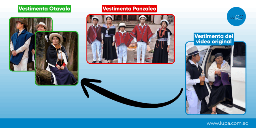 • El coordinador de Cotopaxi de la CONAIE, Apawki Castro, indicó a Lupa Media que Iza pertenece al pueblo Panzaleo y no al Otavalo, cuya vestimenta se observa en el video.