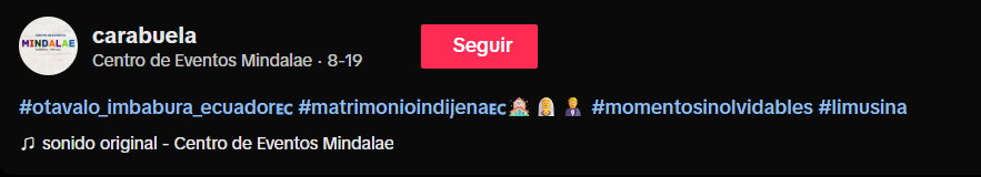 • En el caso del video viral, el perfil utilizó hashtags como #matrimonioindígena, lo que sugiere que corresponde a una ceremonia de matrimonio.