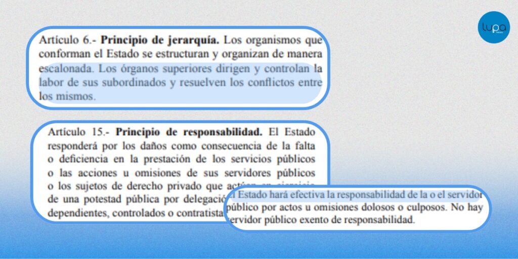 - Artículo 6: los órganos superiores deben dirigir y controlar la labor de sus subordinados.