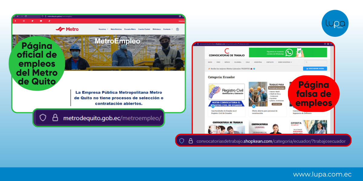 COMPLETAMENTE FALSO: El video viral que ofrece empleos del Metro de Quito por TikTok es fraudulento. El Metro confirmó que no realiza convocatorias por esta red social ni mediante el enlace «Convocatorias de trabajo Shopkean». Todas las ofertas oficiales se publican exclusivamente en canales institucionales y plataformas gubernamentales.