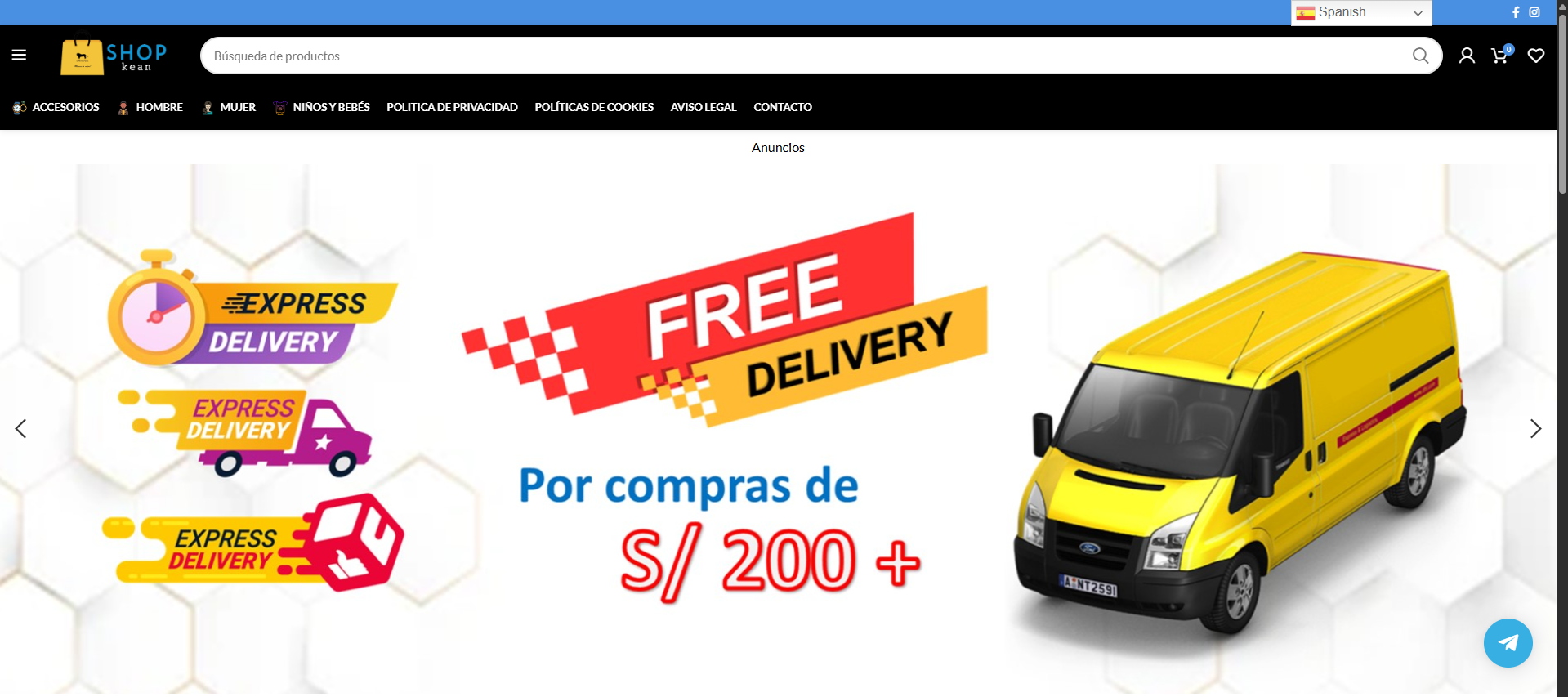 - El dominio de la página termina en shopkean.com una página de compras on line.
