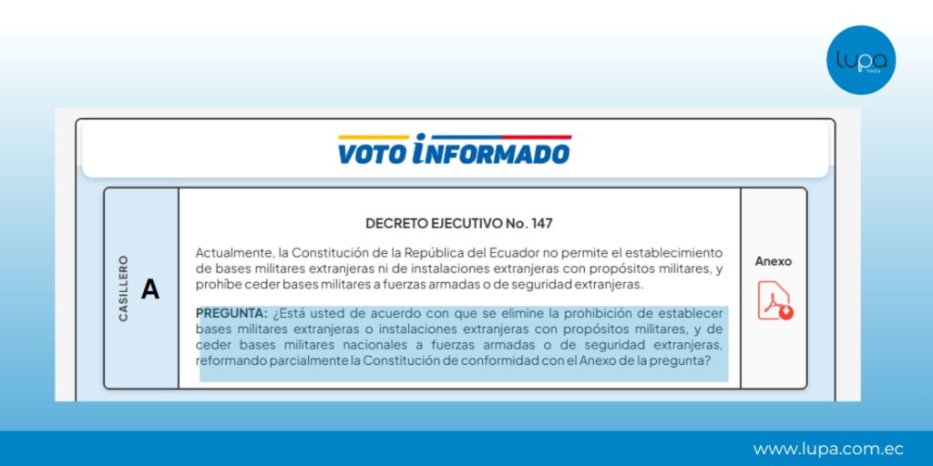 Noboa afirmó falsamente que la pregunta del referéndum no menciona «bases militares extranjeras»