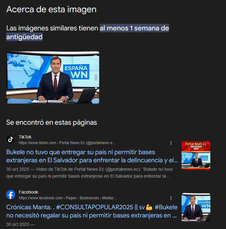 • Contexto real vs. contenido falso: Si bien Daniel Noboa ha mencionado públicamente la posibilidad de instalar bases militares extranjeras en lugares como Baltra, Santa Elena y Manta para combatir el narcotráfico —tema que ha generado debate porque la Constitución de 2008 prohíbe bases militares extranjeras—, el video viral distorsiona estas declaraciones y las presenta en un formato de noticiero falso.