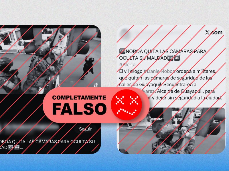 Desde el 24 de marzo circula en TikTok y X un video que acusa al gobierno de Daniel Noboa de reclutar jóvenes ecuatorianos como mercenarios para Ucrania a través de empresas fantasma. El supuesto reportaje atribuido a Teleamazonas no existe: fue fabricado con inteligencia artificial, usa fotos robadas de Instagram y referencia una empresa con un RUC inexistente.